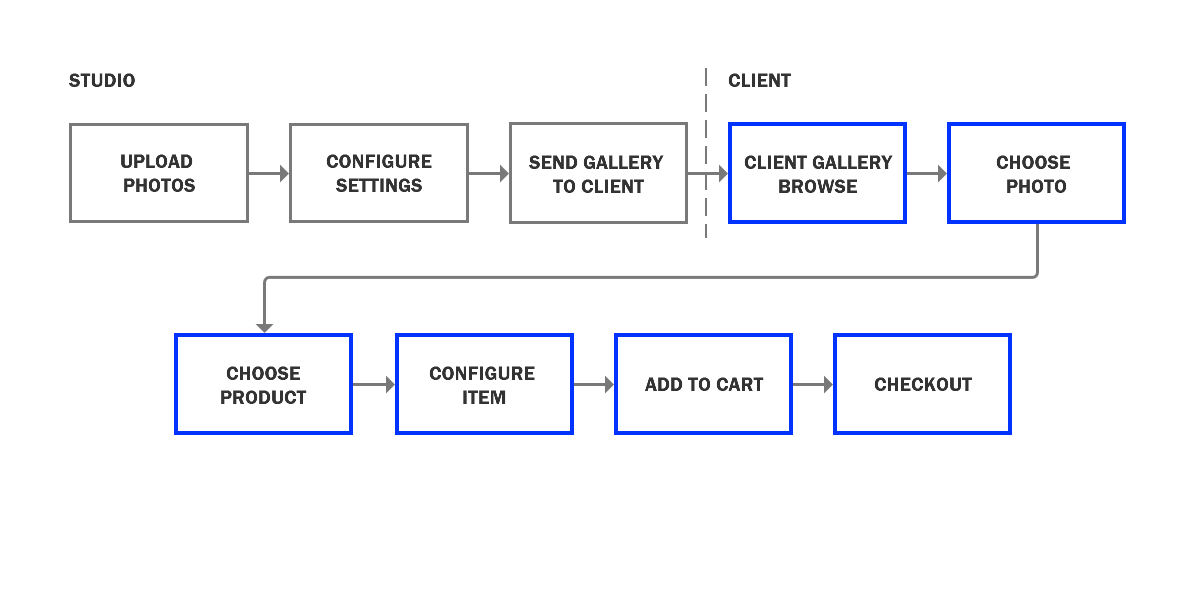 I began the exploration process by taking inventory of the current state of the client gallery feature.