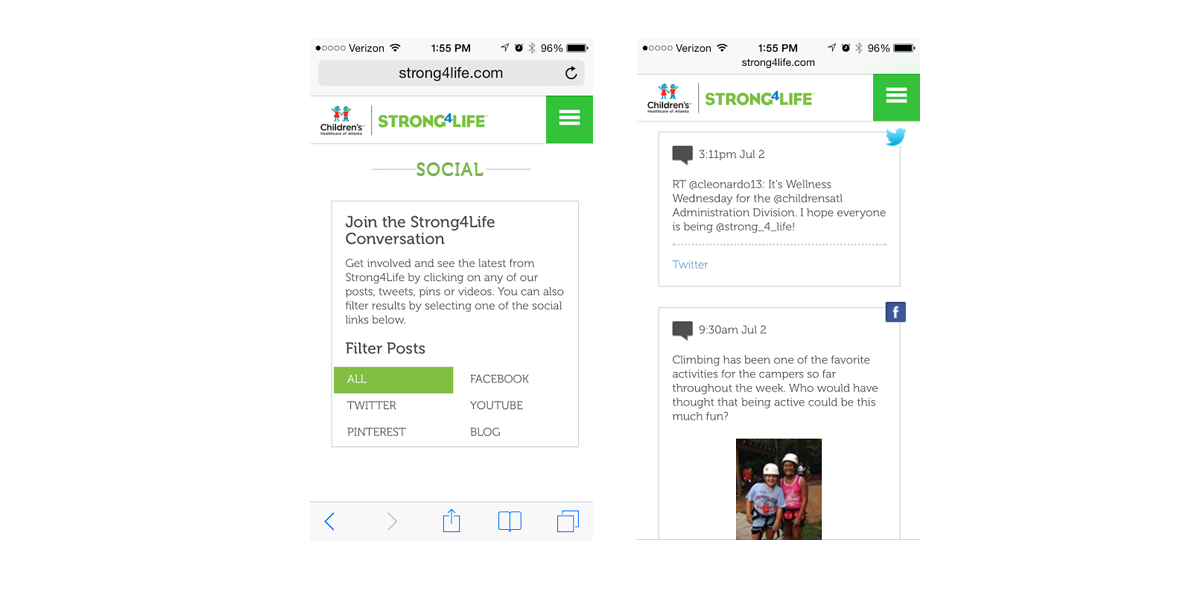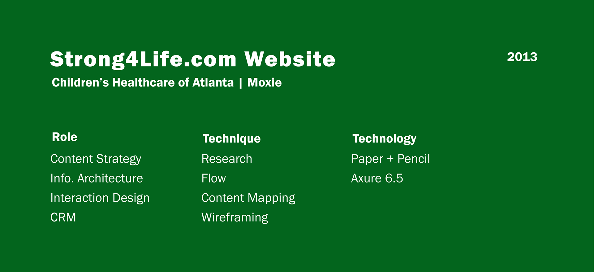 The Strong4Life site won an Atlanta Mobile Marketing Award for Most Used / Biggest Impact.