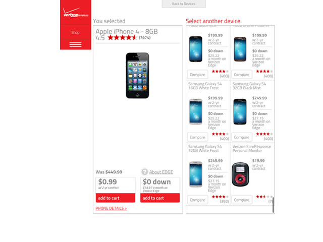 Choosing device color, storage options, and accessories were bright, fun, and easy to click.